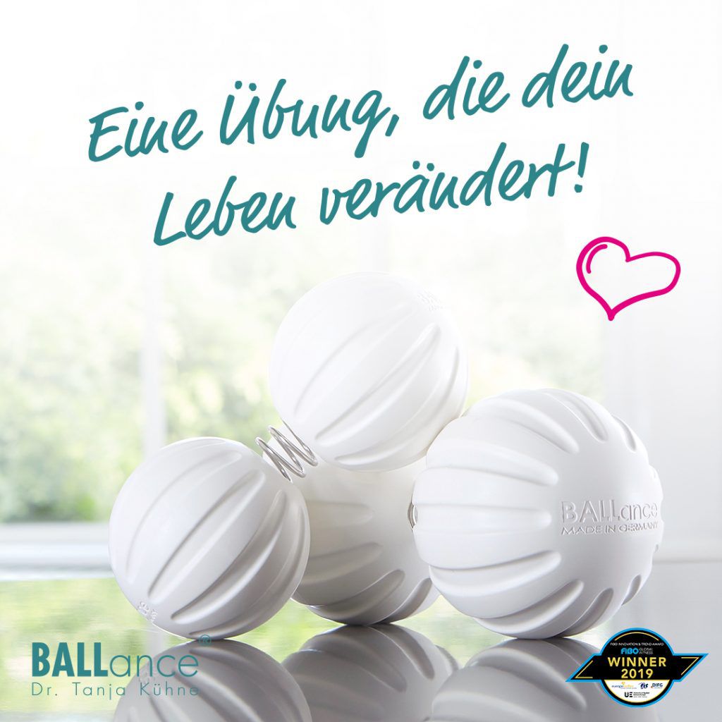 Lizensiert und entwickelt von Dr. Tanja Kühne werden mit speziell entwickelten BALLance-Bällen einfache sehr effektive Übungen durchgeführt.