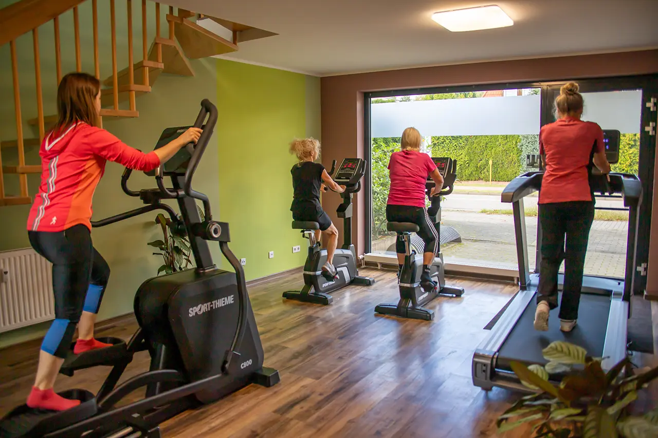 dein RAUM: Gemütlich klein, fast schon wie im eigenen Wohnzimmer mit Laufband, Ergomether-Fahrrädern, Ergomethern-Stepper und Rudergerät.
