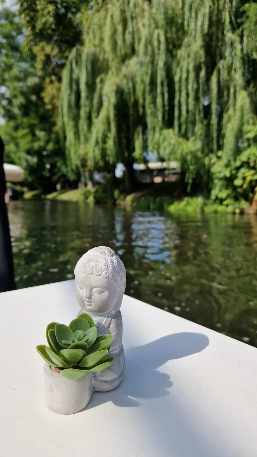 Nach dieser wundervollen 1-h-Yogaeinheit gehen wir ins meditative Schweigen über und finden den Weg auf unseren Kahn, der im Hafen ebenfalls mit einer schweigenden Kahnfährfrau, auf uns wartet.